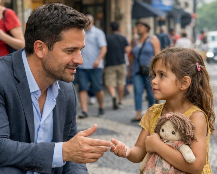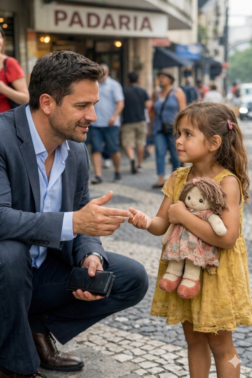 Dok je išao prema svojoj luksuznoj pekari, čuo je mali glas koji je prekinuo njegovu svakodnevnu rutinu. “Gospodine, možete li kupiti moju lutku?” bila je to djevojčica, samo šest godina stara, sa ozbiljnim pogledom. U naručju je držala krpenu lutku, koja joj je bila posljednje što je imala. Djevojčica je mirno objasnila da je njezina mama već tri dana bila bez hrane. Ta rečenica ostavila je dubok trag u Rafaelovim mislima.