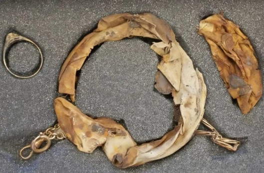 Šalica iz muzeja bila je upravo takav predmet. S vremenom, metal na dnu je oslabio, otkrivajući prostor koji je desetljećima bio zatvoren. Kada su je konačno otvorili, unutra su pronašli dva predmeta: zlatni prsten i nježni lančić. Predmeti su bili maleni, ali njihova simbolika bila je golema. Nije teško pretpostaviti da su za vlasnika značili mnogo više od materijalne vrijednosti. Možda je prsten bio podsjetnik na suprugu, majku ili sestru. Možda je lančić bio uspomena na dijete, prijatelja ili nekoga tko je ostao izvan logora.