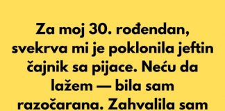 Za moj 30. rođendan, svekrva mi je poklonila jeftin čajnik sa...