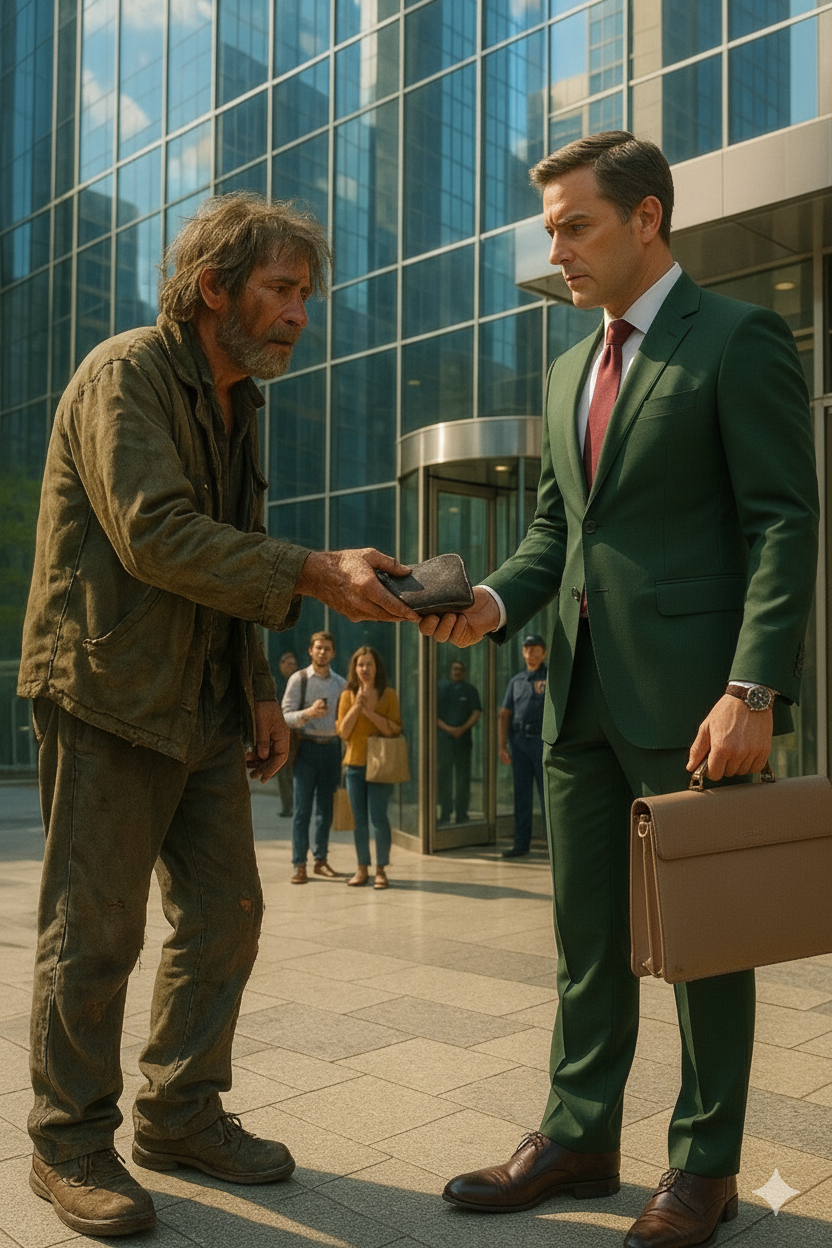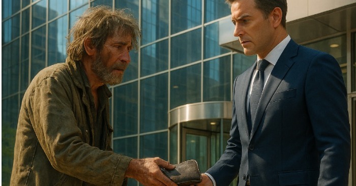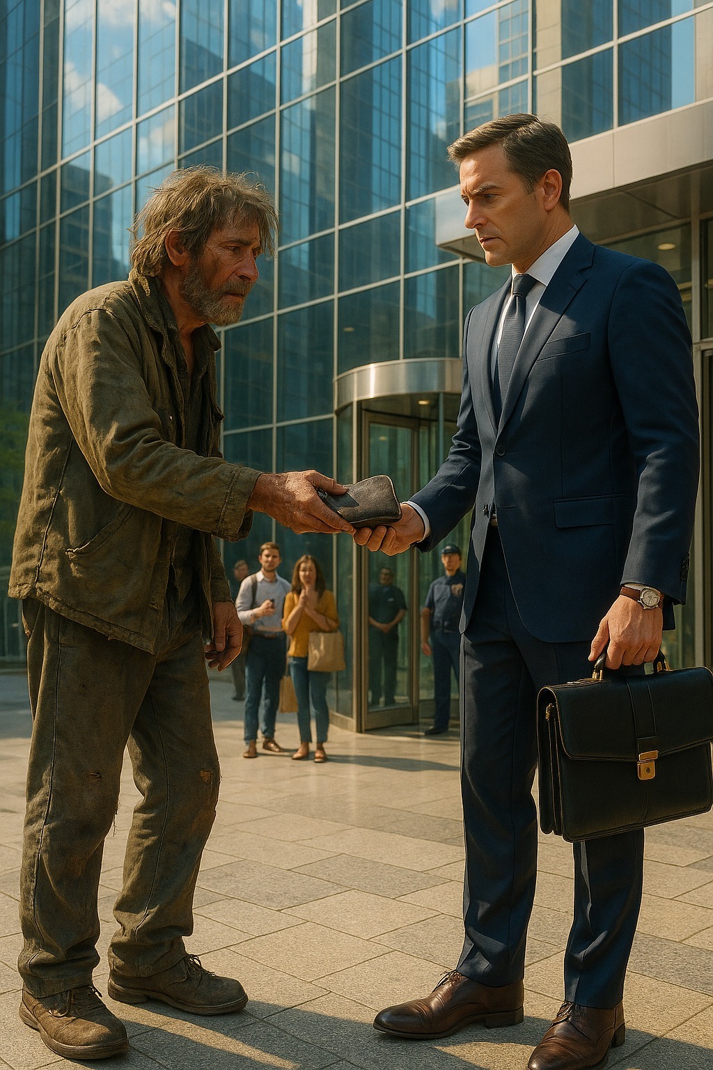Na ulici je ugledao kožni novčanik, iznošen, ali očito vrijedan. Otvorio ga je i srce mu je brže zakucalo – novčanik je bio pun stotina dolara, kreditnih kartica, posjetnica i vozačke dozvole. Fotografija na vozačkoj dozvoli prikazivala je muškarca u skupom odijelu, očito osobu iz bogatog društva.