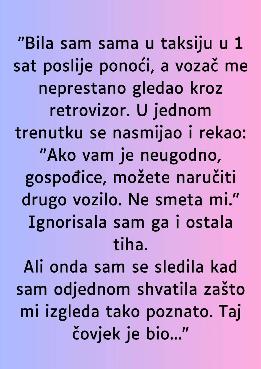 U današnjem članku vam pišemo na temu neobičnog i zastrašujućeg iskustva koje je mlada žena doživjela jednog noćnog putovanja taksijem. Ova priča nas podsjeća na to kako se ponekad običan trenutak može pretvoriti u situaciju koja budi duboki strah i nesigurnost.