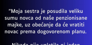 “Moja sestra je posudila od nase majke koja ima malenu penziju...