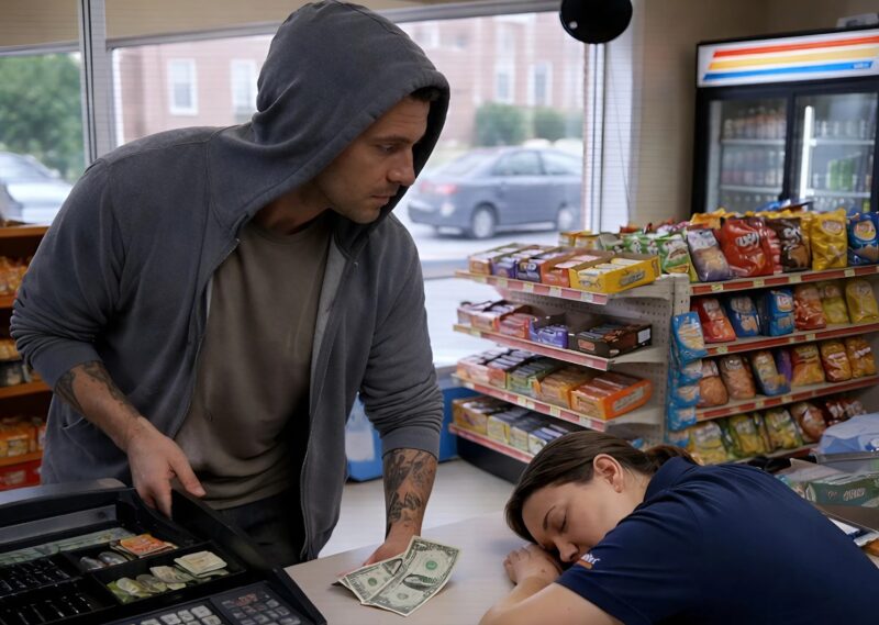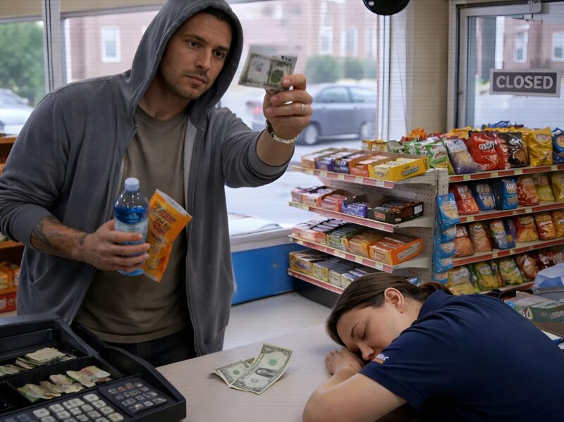 Dok je muškarac šetao pored polica, pokušavajući da nađe vodu, iznenada je primetio nešto čudno. Kasirka, koja je bila iza pulta, spavala je, naslonivši glavu na ruke. Kasa je bila otvorena, novac ležao pored nje, a prodavnica bila potpuno prazna. Tišina je vladala, jedini zvuk bio je blagi šum frižidera i buka ulice koja se čula kroz staklo prodavnice. Za svakog, ova scena bila bi prilika da iskoristi trenutnu situaciju.