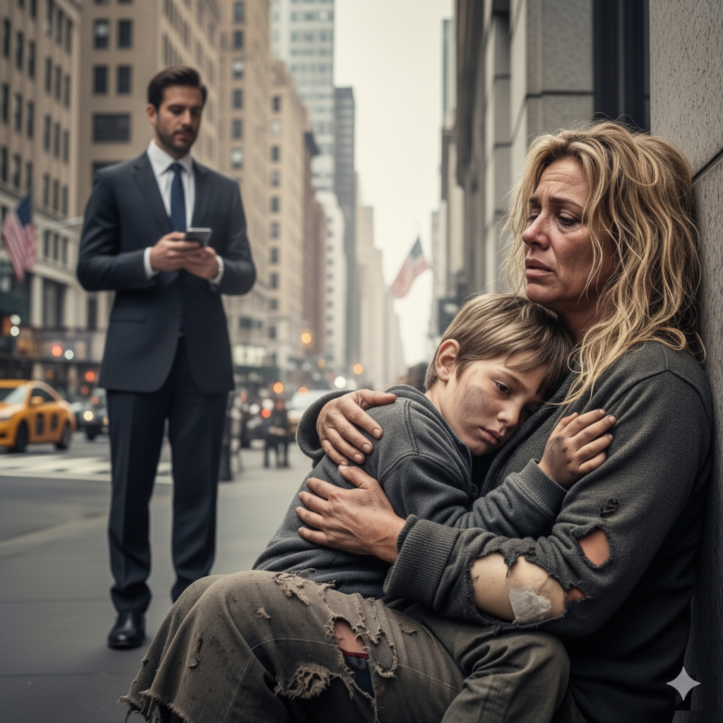 Ulice Menhetna bile su ispunjene jutarnjom žurbom, ali tog dana vreme je kao da je stalo za milijardera Tomasa Vekslera. Dok je prilazio, srce mu je počelo ubrzano kucati. Kada je podigla pogled, stao je. Pred njim je stajala Izabela — njegova žena, za koju je verovao da je poginula pre pet godina. Kleknuo je pored nje, a glas mu je bio pun bola. „Živа si…“