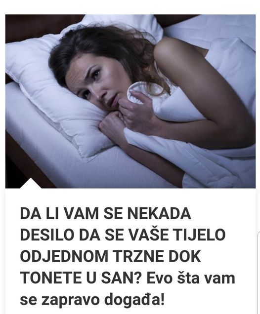 Jeste li ikada osjetili nagli trzaj tijela dok ste tonuli u san, kao da padate s velike visine,svima nam se desilo to bar jednom.Šta se zapravo dešava vašem tijelu pročitajte u nastavku teksta