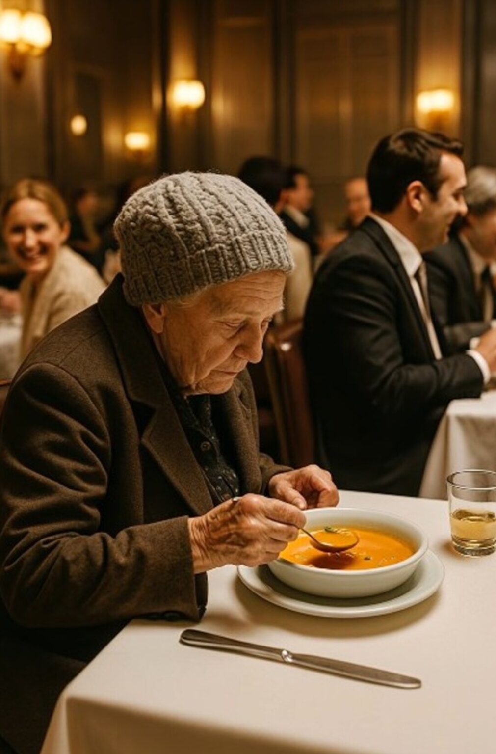 Iako je recepcionerka oprezno primijetila njezin izgled, žena nije bila tu da impresionira — ona je došla s ciljem. Naručila je najjednostavnije jelo na meniju — povrtnu supu, ali to nije bila obična narudžba. Za nju, ta supa bila je simbol jednog sna, sjećanja i ljubavi koju je živjela.