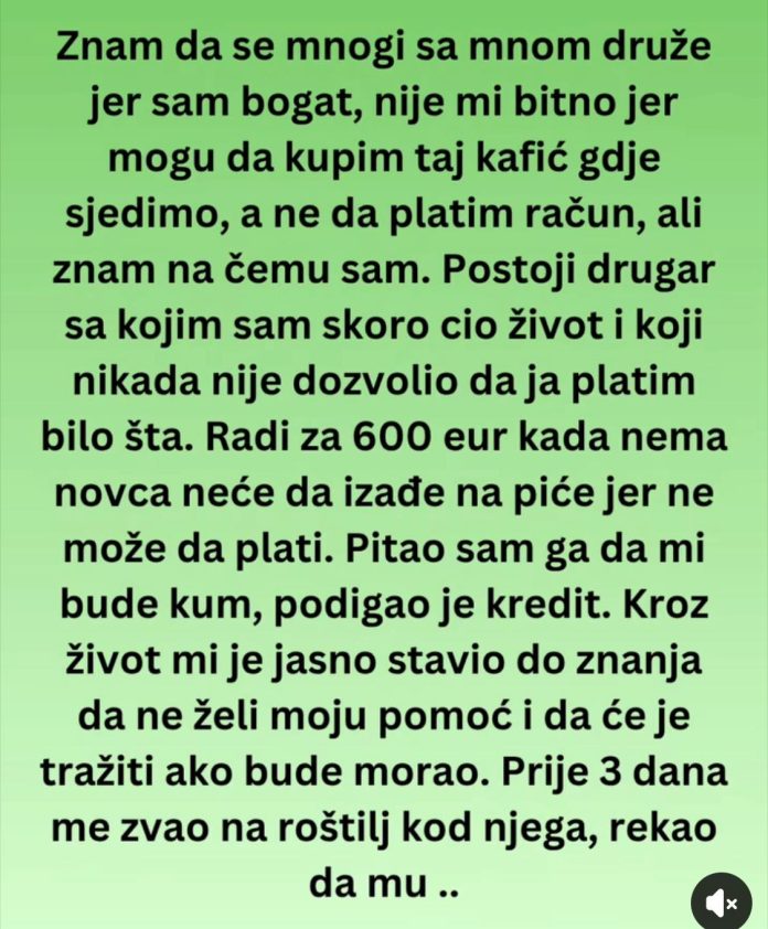 U današnjem članku vam pišemo na temu prijateljstva koje se ne kupuje novcem, već karakterom. Ova priča govori o odnosu između dvoje ljudi koji su kroz godine naučili šta znači istinsko prijateljstvo i kako ono ne zavisi od bogatstva, već od iskrenosti, poštovanja i dosljednosti.