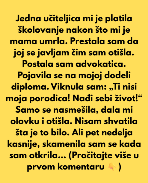 Kroz godine, bol nije nestajala, samo se mijenjala. Adolescencija bez mame bila je teža od svega što sam ikada zamišljala. Moje prijateljice su imale majke koje su ih savjetovale, pomagale, bile uz njih, a ja sam osjećala prazninu. Ipak, s vremenom sam naučila cijeniti male stvari: osmijeh prijatelja, podršku tate, ljubaznost drugih. Počela sam shvaćati da je njena ljubav ostala u meni, u svim onim stvarima koje mi je prenijela.