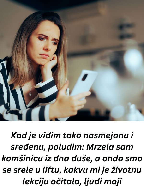 Sve se promenilo jednog sasvim običnog dana. Vraćala se kući umorna, razmišljajući o obavezama koje je čekaju, kada je ušla u lift i zatekla Ivanu unutra. Na prvi pogled, nije je prepoznala. Ivana je izgledala slomljeno. Oči su joj bile crvene, lice otečeno, kao da je satima plakala. Taj prizor ju je zbunio i zatekao nespremnu.