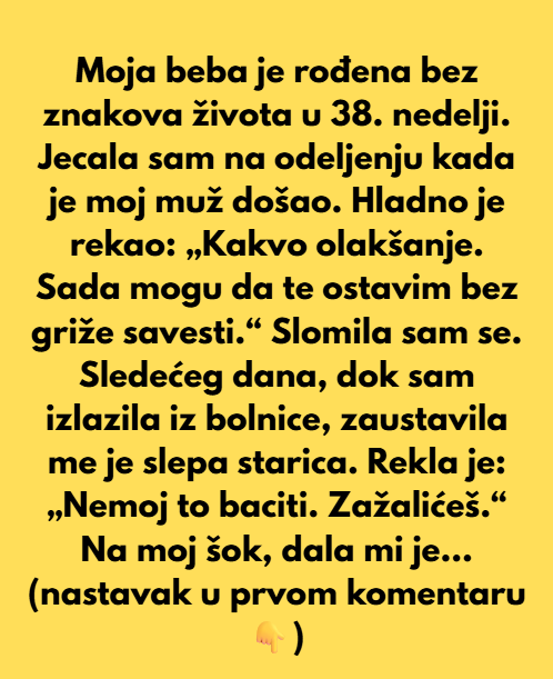 Tema današnjeg članka je duboko emotivna priča o trenutku izdaje, bola i tuge u odnosu između partnera. Ova žena ispričala je trenutak kada je njeno povjerenje srušeno upravo od strane osobe koja je trebala biti uz nju, a koji je umjesto podrške izgovorio riječi koje su zauvijek promijenile njen pogled na njihov odnos.