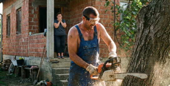 Prelomni trenutak dogodio se kada je Rade završio u bolnici. Dejan je u tome vidio priliku da napokon riješi problem koji ga je godinama gušio. Njegova supruga Milica pokušavala ga je zaustaviti, govoreći da nije ispravno uništiti nešto što stoji tu decenijama, ali Dejan više nije mogao slušati. Uzeo je motornu testeru, vođen bijesom, umorom i očajem.