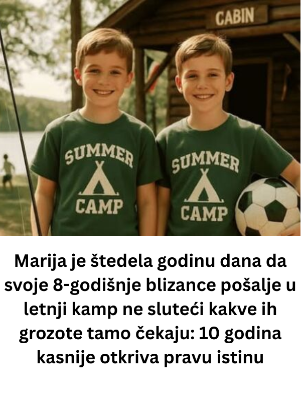 Prošlo je nekoliko nedelja otkako su Marija i Karlos Martinez konačno ostvarili svoj san i poslali svoje osmogodišnje blizance u Kamp Vajldvud. Ovo je trebalo da bude njihov prvi pravi odmor, nedelja ispunjena prirodom, jezerskom vodom i kamperskim uspomenama. Džejk i Tomi su čekali ovaj trenutak s nestrpljenjem. Iako su bili identični blizanci, razlikovali su se po temperamentima. Džejk je bio tih i posmatrač, dok je Tomi bio aktivan, društven i uvek u pokretu. Bilo je to savršeno vreme za njih da dožive nešto novo, daleko od roditeljskog okruženja.