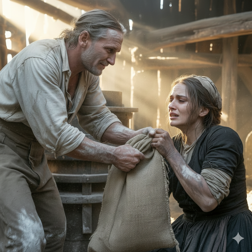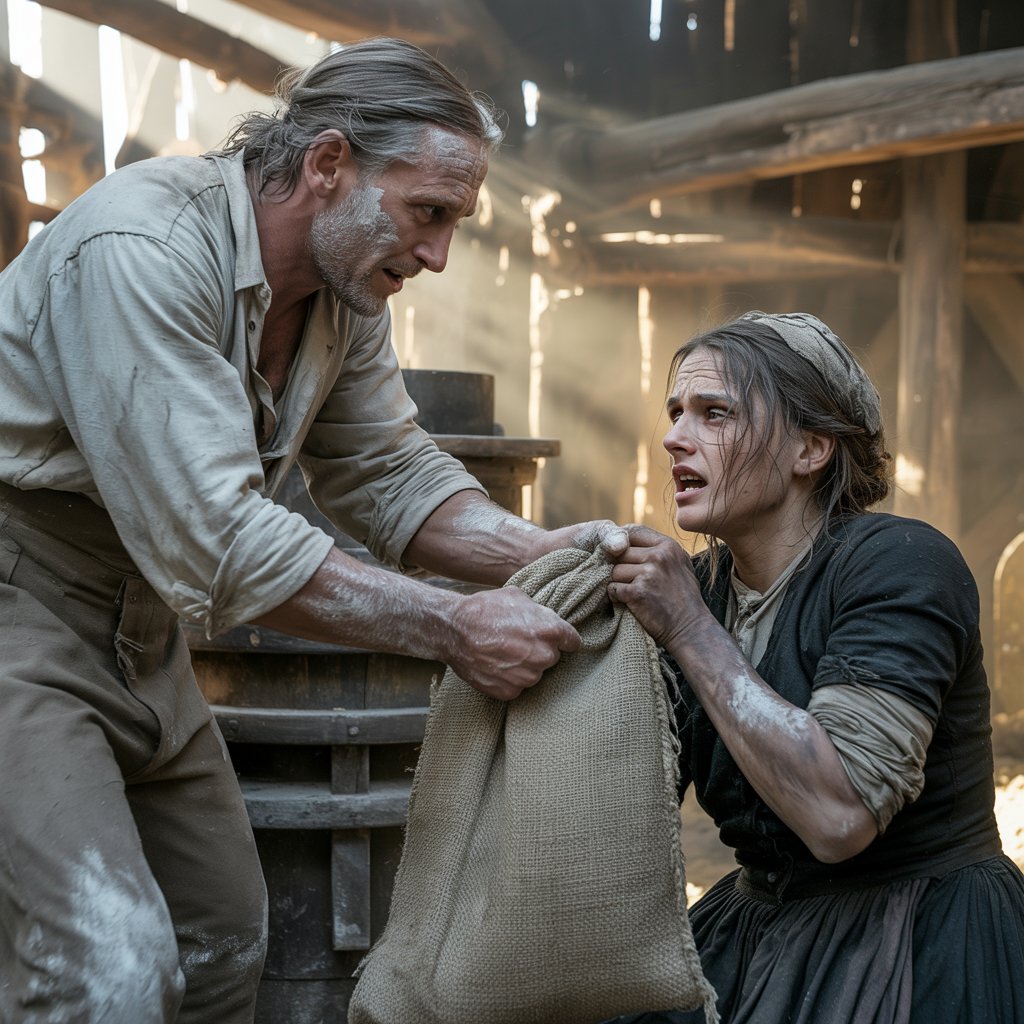 Jednog dana, pred mlin je došla Stana, mlada udovica, siromašna žena sa troje djece koja je jedva preživljavala. Donijela je dva mala džaka pšenice, jedinu hranu koju je imala, i molila mlinara Todora da je ne odbije zbog dva groša koja joj nisu bila dovoljna da plati. Iako su njene suze bile stvarne, Todor nije pokazao ni trunku sažaljenja. Umjesto toga, oteo joj je jedan džak brašna i samo joj ostavio manji, zadovoljan time što je profitirao na tužnoj sudbini.
