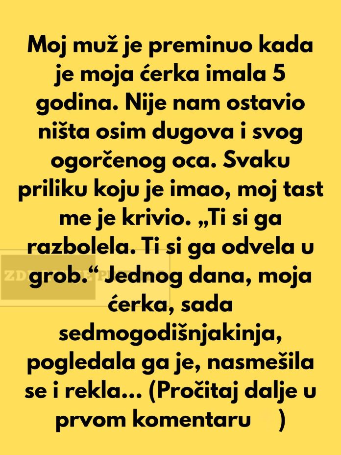 Jednog dana, dok je svekar ponovo vičući pokušavao da je optuži, njegova unuka, koja je sada imala sedam godina, prišla mu je i smireno ga pogledala. Bez straha, ali s ogromnim srcem, upitala ga je: „Deda… da li vikanje na mamu vraća tatu?“ Ove reči su ga potpuno zaledile. Dete je, sa svojom nevinošću, postavilo pitanje koje je potpuno promenilo dinamiku njihovog odnosa.