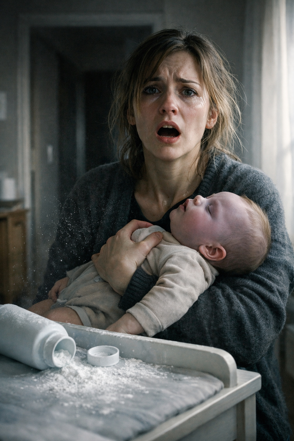 Manje od trideset sekundi nakon što je puder nanijela na svoju kćer, sve se promijenilo. Beba, koja je samo trenutak ranije bila mirna i nasmijana, odjednom je prestala disati. Njeno malo tijelo se ukočilo, lice je počelo mijenjati boju, a prostor je ispunila zastrašujuća tišina. Nije bilo plača, nije bilo zvuka — samo borba za dah koja je trajala vječnost.