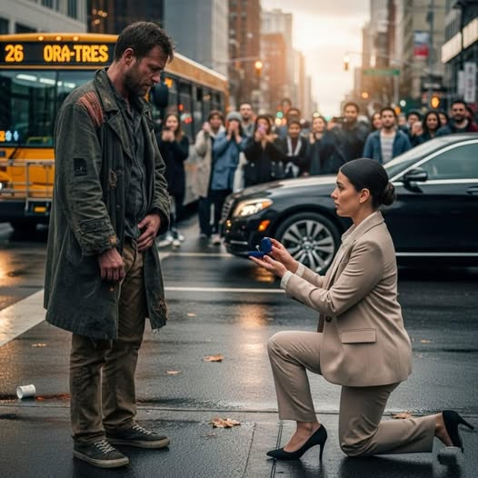 Kiša je sipila lagano, gotovo nježno, dok je svijet jurio ispod kišobrana i nitko nije primijetio prizor koji se događao nasred raskrižja. Žena u bež odijelu klečala je na mokrom asfaltu, drhtavim glasom izgovarajući riječi koje su parale zrak: „Molim te… oženi me.“ U rukama je držala baršunastu kutijicu, a pred njom je stajao muškarac u poderanom kaputu, neobrijan, umoran, ali s očima koje su govorile više od ijedne riječi. Taj muškarac nije imao dom, ni posao, ni išta što bi društvo nazvalo uspjehom. A ipak, u tom trenutku bio je središte Eleninog svijeta.
