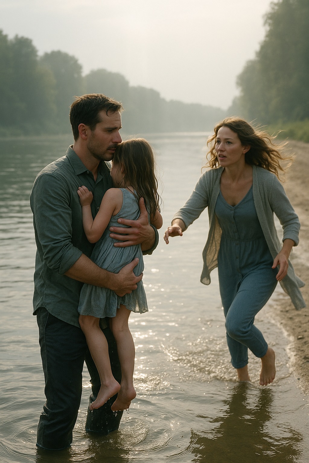 Bez razmišljanja, Majkl je skočio u hladnu, mutnu vodu, ne znajući ni da li će uspeti da dođe do devojčice koja je bila na sredini reke. Njene ruke su se borile s vodom, oči su joj bile preplašene, a struja je bila prejaka. Majkl je plivao nadole, grabeći je i privijajući uz sebe, osećajući njen hladni dah, i kao da mu je srce bilo stisnuto — kako je mogao da zakasni?