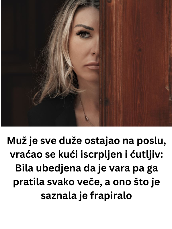Međutim, promene su dolazile tiho, gotovo neprimetno. Suprug je počeo da ostaje duže na poslu, vraćao se umoran, odsutan, bez želje za razgovorom. Njihovi dani su postajali sve tiši, a ona je u toj tišini tražila razumevanje, ne sumnju.