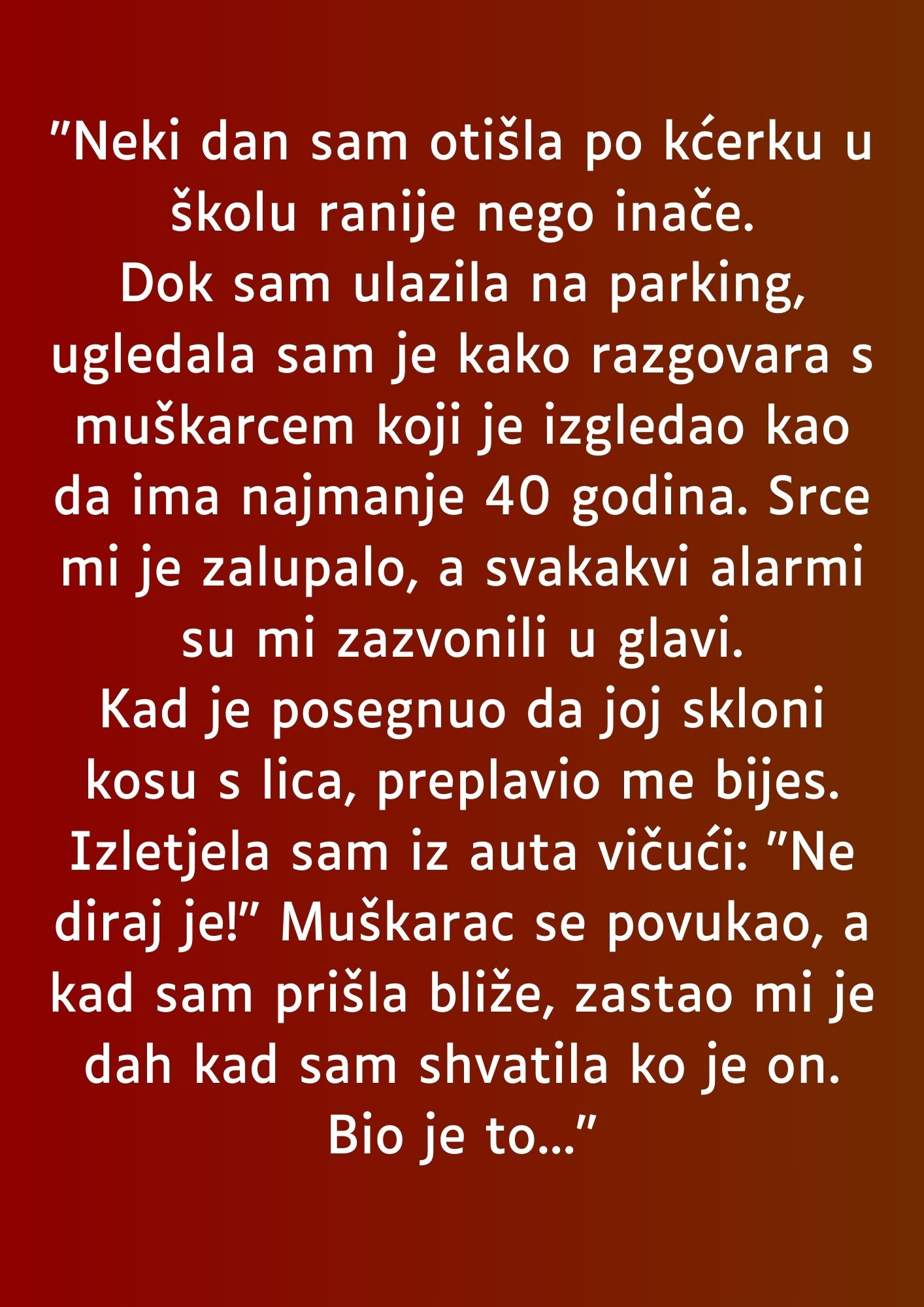 S velikim strahom i bijesom, majka je izjurila iz automobila, vičući: “Ne diraj je!” Ton njezina glasa bio je mješavina bijesa i straha, jer je znala da mora stati na kraj bilo kojoj prijetnji svojoj kćeri. Muškarac je zatečen reagirao, a kći je stajala zbunjeno, izgleda ne shvaćajući u potpunosti što se zbiva. No, kada je majka prišla bliže kako bi bolje vidjela njegovu reakciju, nastalo je tišinu u kojoj je sve stalo. Tada je prepoznala njega. Bio je to njezin bivši partner, otac njene kćeri, čovjek koji je nestao iz njihovih života još prije mnogo godina.