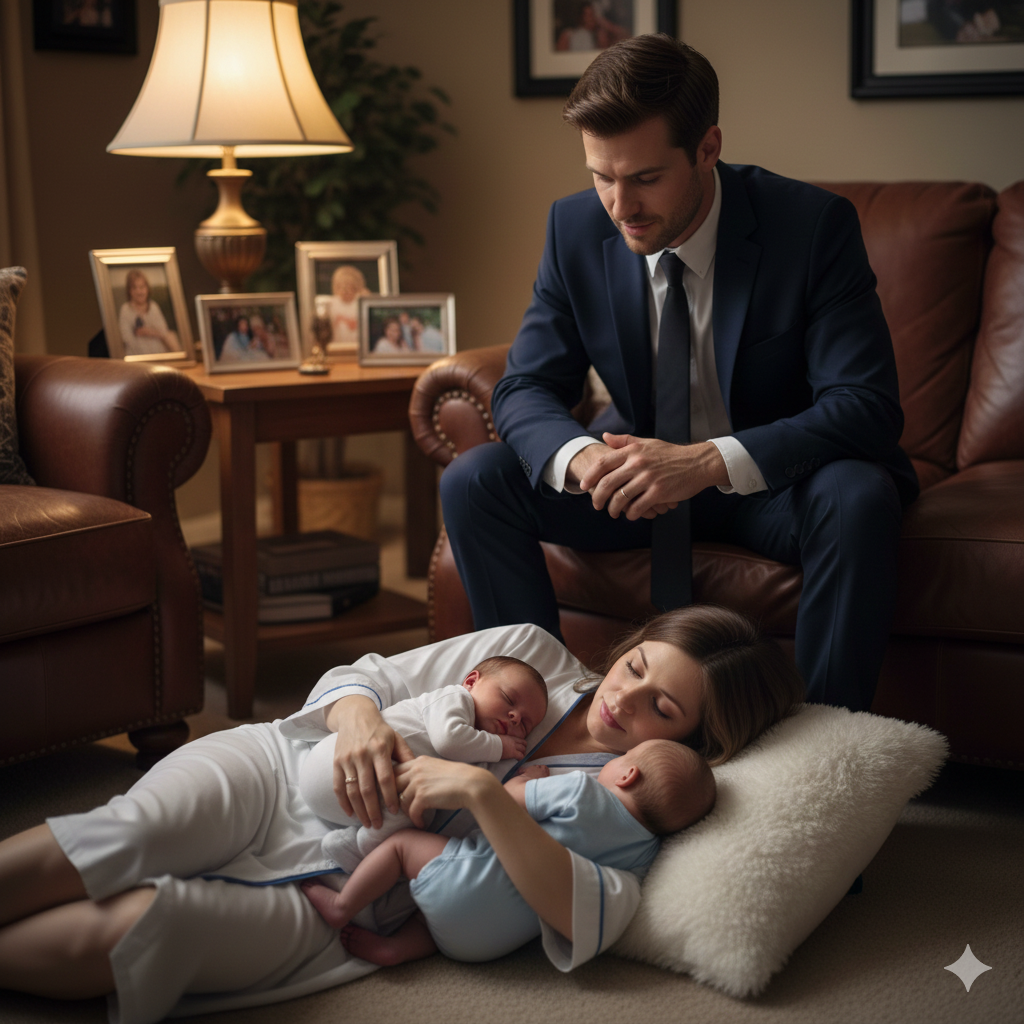 Ethan je tog dana proveo više od dvanaest sati na sastancima i humanitarnoj večeri, noseći sa sobom ne samo stres, već i duboku usamljenost koja je pratile udovce. Kada su se vrata dvorca otvorila, očekivao je kao i obično tišinu, ali umesto toga, začuo je nešto ljudsko. Tihi ženski dah, polako i mirno, uz zvuk dva mala srca — srca njegovih šestomesečnih blizanaca, Aiden-a i Ava-e. Zbunjeno je pratio zvuk kroz hodnik dok nije stigao do dečije sobe.