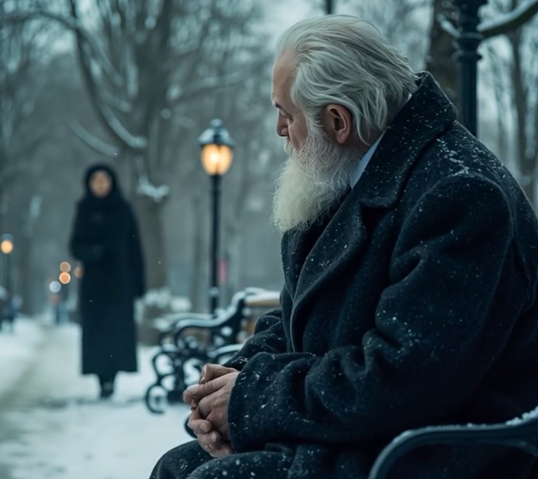 • Nikolaj je lutao po snežnim ulicama, postajući nevidljiv za svet koji je nastavio da se okreće. U parku, na jednoj klupi, sećao se trenutaka sa svojom pokojnom ženom i sinom. Taj park je bio mesto na kojem je proveo mnoge srećne trenutke, ali sada je bio samo podsećanje na prošlost, na sve što je izgubio.
