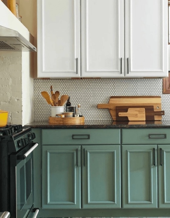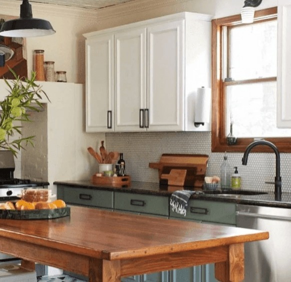 Kada je došao red na kuhinjske elemente, par je ponovo pokazao smisao za kombinovanje nijansi i stvaranje kontrasta. Gornji ormarići prefarbani su u svježu bijelu boju, čime su dodatno doprinijeli osvjetljavanju prostora. Međutim, da kuhinja ne bi djelovala premonotono, donji ormarići su dobili prelijepu sivo-maslinastu nijansu. Ova kombinacija tonova unijela je i svježinu i smirenost, a drveni detalji koje su zadržali povezali su sve elemente u skladnu cjelinu. Rezultat je bio moderan izgled koji djeluje kao da potječe iz mnogo skupljeg projekta.