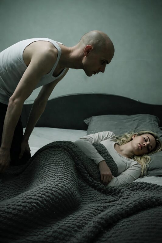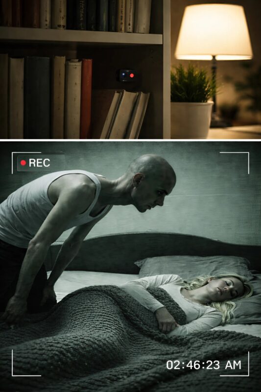 Jednom kada je instalirala skrivene kamere, njene najgore sumnje su se potvrdile. U zapisima je vidjela kako je neki muškarac, koji se iznenada pojavio iz tavanskog prostora, počinjao da luta njenom kuhinjom i spavaćom sobom, pijući vodu iz njene čaše i provjeravajući stvari u njenom domu. Najstrašnije od svega bilo je to što je on ostao pored njene krevetine i više od sat vremena, samo je stajao i posmatrao je kako spava, ponekad se savijao i pažljivo provjeravao da li diše.