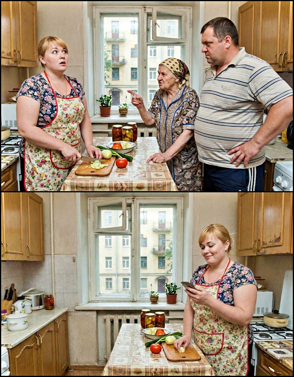 U trenutku kada je njeno objašnjenje izazvalo pravi preokret, postalo je jasno koliko je važno da svaka osoba u porodici ima svoj prostor, i koliko je nezamislivo očekivati da je sve “zajedničko”. Oleg se, i dalje ljut, suočavao sa sopstvenom nesvesnošću da je prešao granicu i izdao poverenje. I tako je Ljudmila, dok je smeštala pripremljeni “olivje” u frižider, shvatila da je donela pravi zaključak. Na kraju, prava vrednost leži u poštovanju, ljubavi i poverenju unutar porodice, a ne u nesvesnoj želji za kontrolom i prisvajanjem tuđeg.