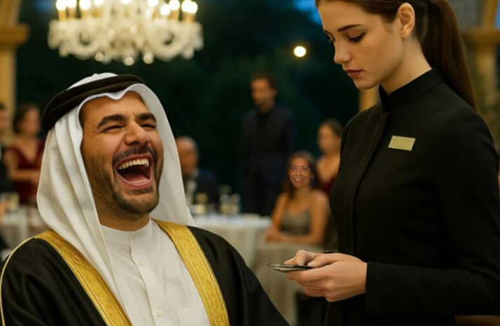 Dok je konobarica stajala ispred stola, mirno je stavila tacnu na sto, pogledala šejka i tiho, ali jasno izgovorila reči na savršenom arapskom jeziku: „Ko ponižava ženu za svojim stolom, ponižava svoj ugled pred gostima.“