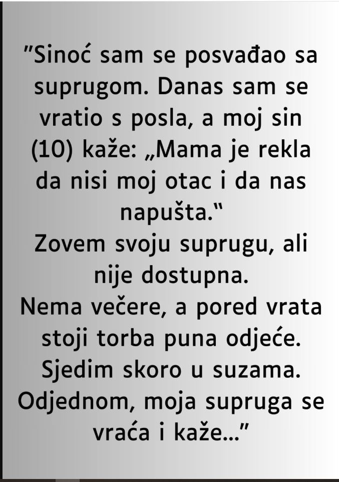 U današnjem članku pišemo o jednoj potresnoj ispovijesti koja nas podsjeća na to kako nesporazumi i nejasnoće mogu ozbiljno utjecati na obiteljsku dinamiku. Naime, u ovoj priči se govori o neplaniranom sukobu između supružnika, koji je nastao zbog niza nesretnih okolnosti.