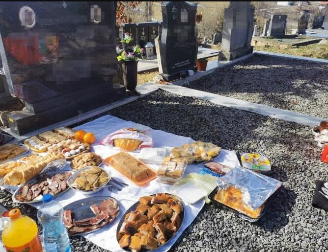 Zajednički običaj za sve krajeve Srbije jeste okupljanje porodice na groblju i skromno posluženje. Neki donose pitu, pecivo, kuvana jaja ili pečenje, dok drugi poslužuju samo kafu i vodu. Veruje se da se na grobu mora uzeti makar jedan zalogaj — običaja i poštovanja radi. Taj čin ne predstavlja gozbu, već simbolično zajedništvo između živih i mrtvih.