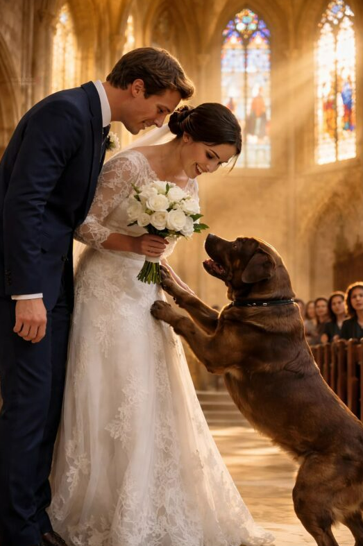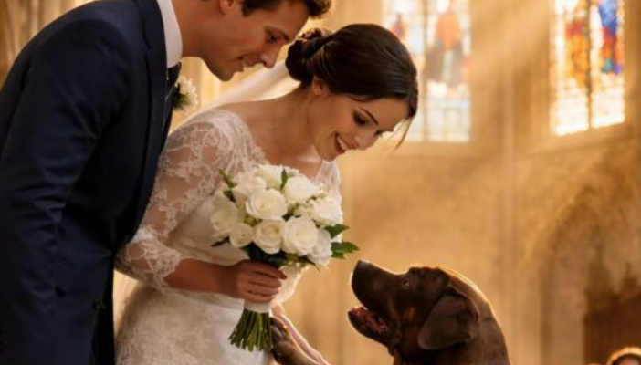 Mladenka, smirena ali uzbuđena, držala je buket u rukama, dok je mladoženja stajao uz nju, vidno nervozan. I dok su svi gosti tiho čekali početak ceremonije, mladenka nije bila sama – uz nju je bio njezin pas, veliki smeđi pas kojeg je od malih nogu zvala svojim prijateljem. Tog dana, pas nije bio samo ljubimac – bio je njen oslonac.