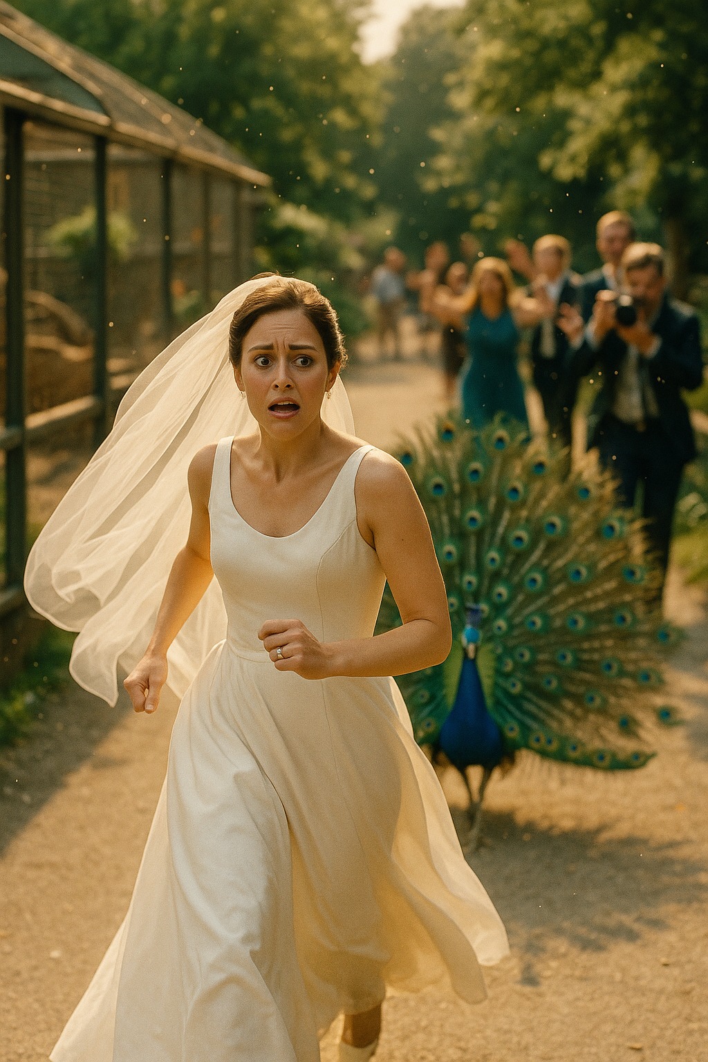 Veo je zatreperio na vetru, baš kao paunov rep, i ptica je poletela — ne zbog zlobe, već zbog instinkta, možda i radoznalosti. Mlada je vrisnula i potrčala, haljina joj je blistala među kavezima, a paun je uporno jurio za njom. Smeh i panika stopili su se u jedan zvuk, dok su gosti, u neverici i zabavi, posmatrali tu neplaniranu predstavu. Lavovi su se lenjo pomerili, majmuni su zavrištali, a fotograf, koji je do tada smireno čekao pravi kadar, nije stigao ni da pritisne okidač.